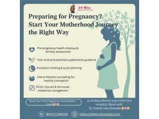 Thinking about starting a family? Visit 24 Bliss Mother and Child Care Hospital and consult Dr Snehal Tate Shewale, trusted Gynaecologist in Ravet. Get complete pre-pregnancy checkup, ovulation tracking, nutrition & supplement guidance, and treatment for PCOS, thyroid, and hormonal issues. Prepare your body for healthy conception and a safe pregnancy. Book your consultation today!