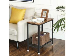 Industrial 2-Tier Side Table with Mesh & Metal Frame – Rustic Brown