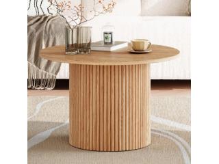 Luxe Ribbed Round Wooden Coffee Table – Stylish Outdoor Centerpiece