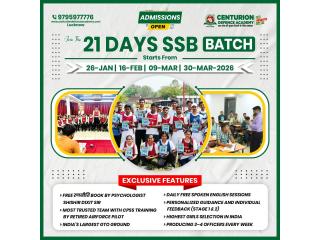 Centurion Defence Academy is regarded as the best SSB Coaching in Lucknow, known for its result-oriented and scientifically designed SSB training programs. The academy provides complete 5-day SSB interview preparation under the guidance of ex-SSB board members, retired defence officers, and experienced psychologists. With a strong focus on developing Officer Like Qualities (OLQs), Centurion ensures personalised mentoring, realistic practice, and continuous feedback. Its world-class infrastructure, including a dedicated GTO ground, creates an actual SSB-like environment, helping candidates gain confidence and improve overall performance.