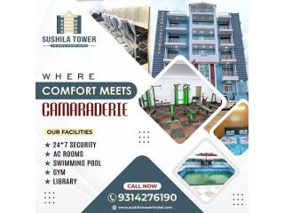 Luxury AC Hostel Near Manipal University JaipurRooms for Rent - Shared - (Rajasthan) - March 17, 2026Sushila Tower Hostel is one of the best luxury AC Hostel near Manipal University in Jaipur, offering all modern amenities such as AC Rooms, Gym, Rooftop Swimming Pool, Library, Coffee Cafe, Canteen and much more.