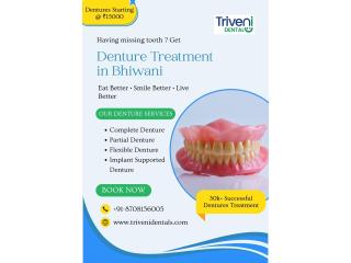 Having missing teeth & facing difficulty in eating? Get affordable and best denture treatment in Bhiwani at Triveni Dental. We offer complete, partial, flexible, and implant-supported dentures with a natural look and perfect fit.