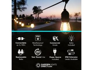 Discover stylish and eco-friendly Solar festoon lights at Garden Lights Direct. Easy to install, and perfect for patios, fences and outdoor ******ce.